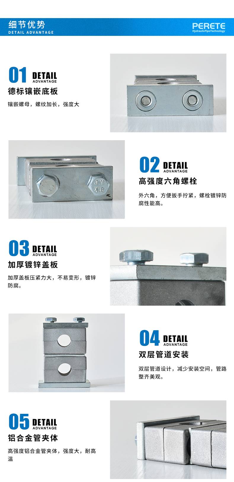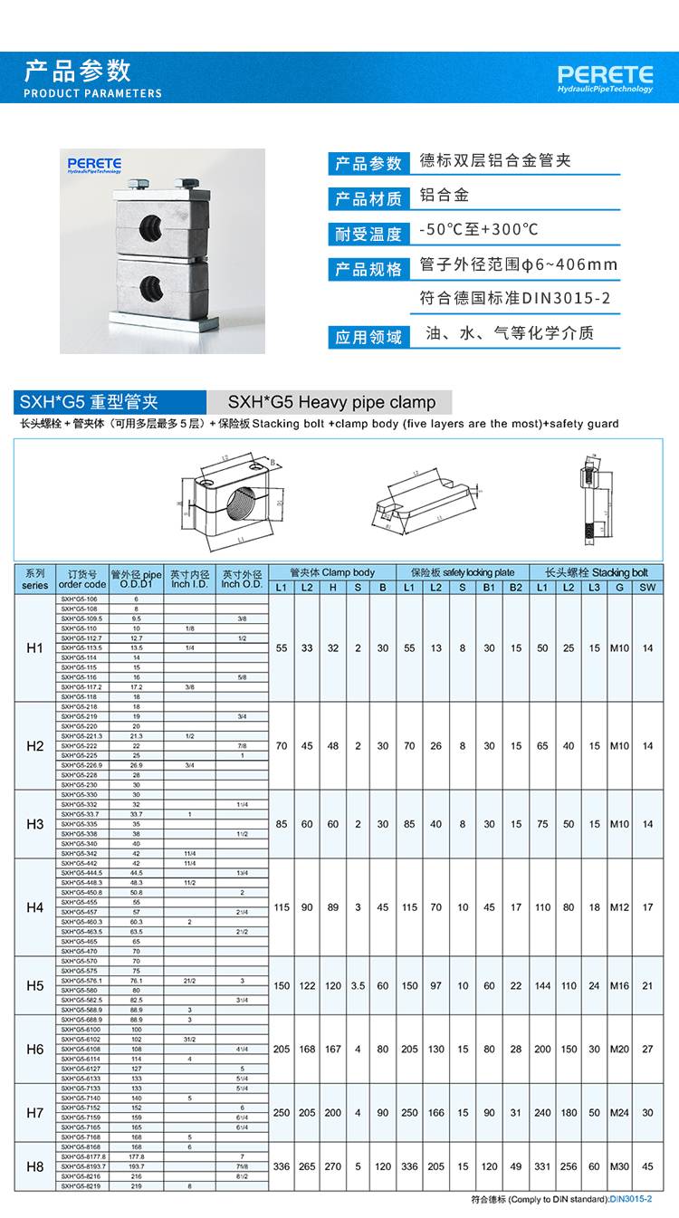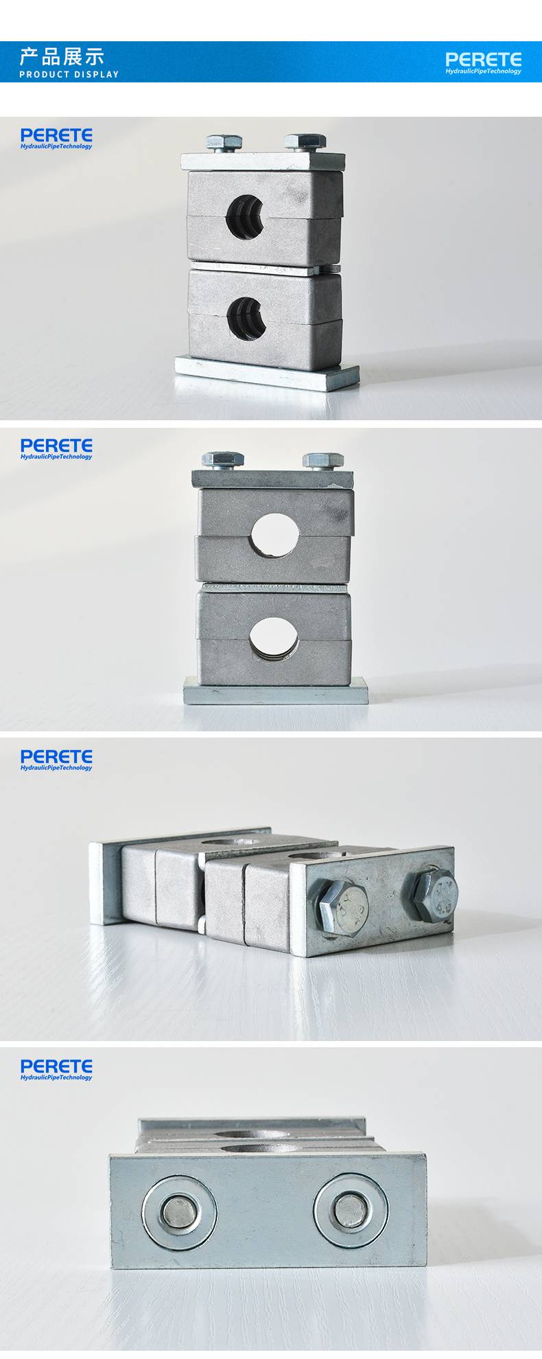 派瑞特 铝管夹重型上下双孔船用液压铝管卡双联固定件支架6-133mm